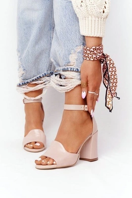 Skórzane Sandały Na Słupku Visconi 4361537 Nude