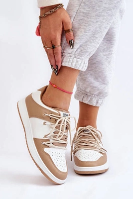 +1Damskie Klasyczne Buty Sportowe Podwójnie Sznurowane Biało-Beżowe Jella