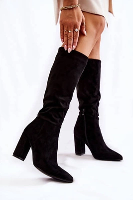 Zamszowe Wsuwane Kozaki Na Obcasie Czarne Miriam