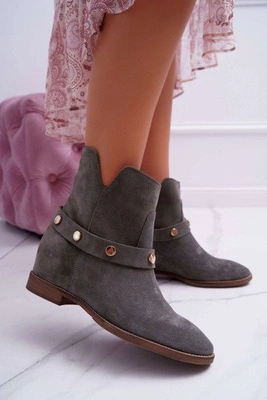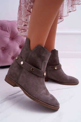 Botki Damskie Laura Messi 1890 Skóra Zamsz Szare Darmah