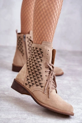 Modne Zamszowe Botki Sznurowane Beżowe Selma