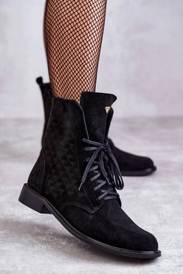Zamszowe Botki Trzewiki Sznurowane Nicole 2781 Czarne