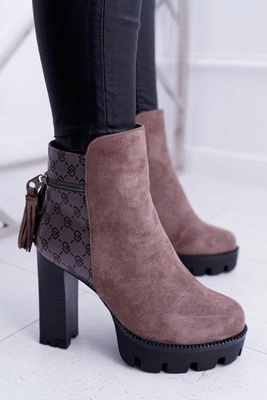 Ciepłe Damskie Botki Na Słupku Brązowe Jokasta