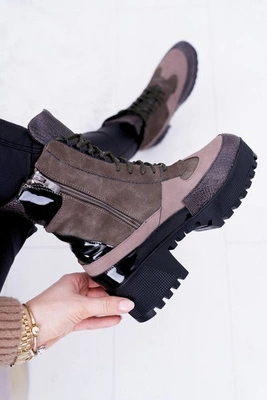 Damskie Botki Ocieplane Trapery Khaki Dowito