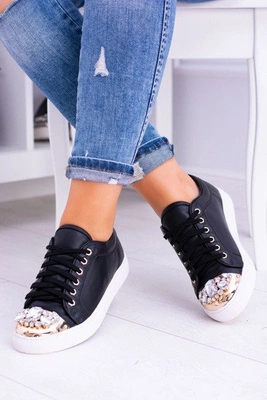 Lu Boo Czarne Trampki z Błyszczącymi Kryształami