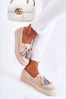 Modne Skórzane Półbuty Loafery Beżowe Loveliness