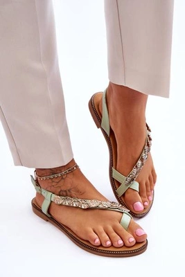 Damskie Sandały Z Ozdobami Na Pasku Zielone Alamis