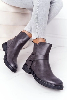 Dziecięce Śniegowce Ocieplane Futerkiem Zamszowe Szare Amelia
