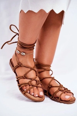 Klapki Damskie Paski na Krzyż Beżowe Philippines