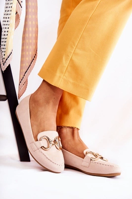 Damskie Zamszowe Mokasyny Z Ozdobą Beżowe Reality