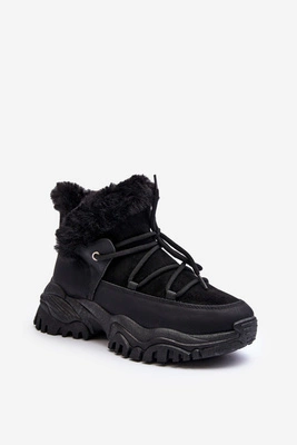 Ocieplane Botki Trapery Na Grubej Podeszwie Czarne Ralotta