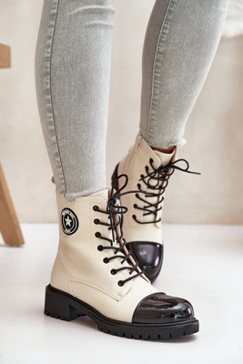 Botki Workery Na Zamek Ocieplane Beżowo-Czarne Soratta