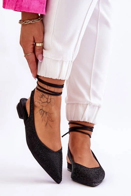 Wiązane Baleriny Z Dżetami Czarne Mavis