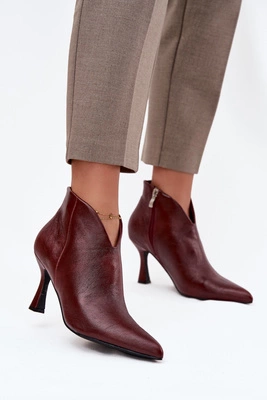 Lakierowane Niskie Botki Damskie Na Szpilce Bordowe Jolivra