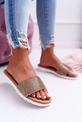 +3Lu Boo Damskie Złote Klapki Z Cekinami Goodies