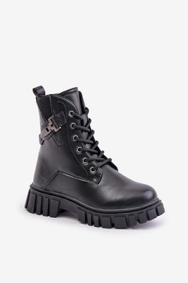 Ocieplane Botki Dziecięce Na Zamek Z Eko Skóry Czarne Liotira