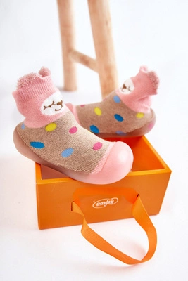 +3Dziecięce Papcie Niechodki Befado 002P019 Beżowo-Różowe