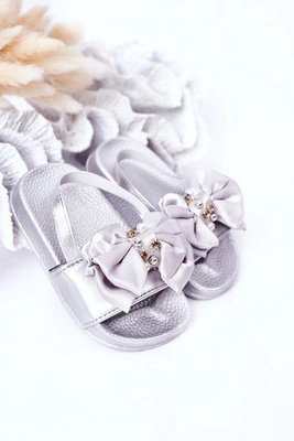 Dziecięce Gumowe Klapki Z Kokardką Srebrne Senari