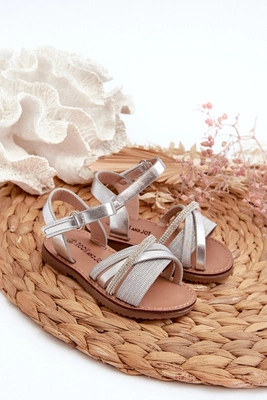 +1Błyszczące Dziecięce Sandałki Na Rzep Srebrne Delphina