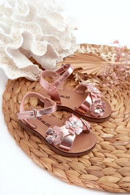 +1Sandałki Dziecięce Ozdobione Kwiatkami Zapinane Na Rzep Złote Fagossa