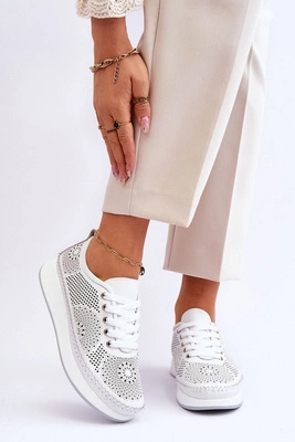 +1Skórzane Damskie Sportowe Buty W Cętki Białe Nancey