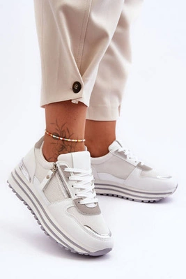 +4Klasyczne Sportowe Buty Na Platformie Białe Feel It