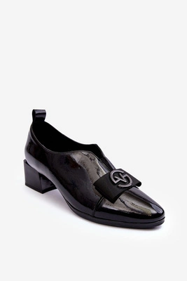 Lakierowane Półbuty Na Obcasie Z Ozdobą Czarne Elosa