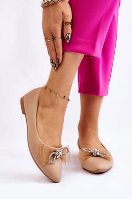 Damskie Baleriny W Szpic Z Ozdobną Kokardą Beżowe Luminous