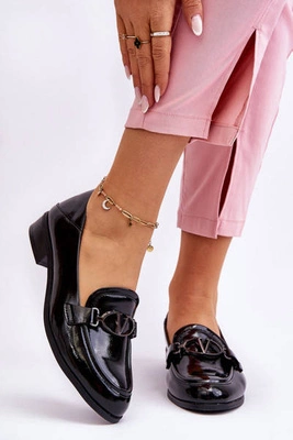 Lakierowane Mokasyny Na Płaskim Obcasie Czarne Marra