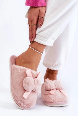 Damskie Ocieplane Papcie Z Futerkiem Beżowo-Różowe Franco