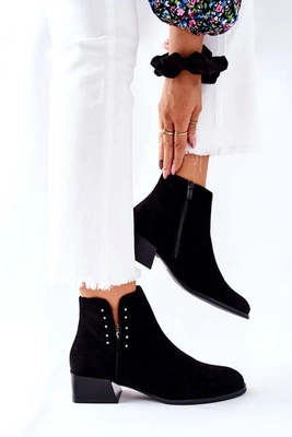 Botki Damskie Na Słupku Zamszowe Czarne Carrick