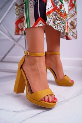 Damskie Żółte Sandały Na Słupku Platforma Debora