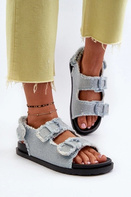 +1Jeansowe Zdobione Sandały Damskie Niebieskie Irmale