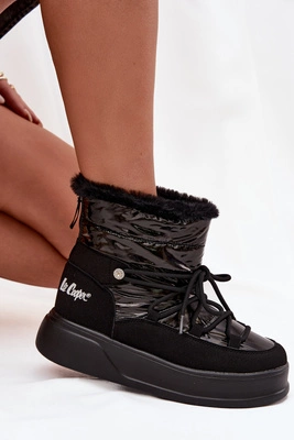 Śniegowce Damskie Na Platformie Ocieplane Futerkiem Czarne Tahlira