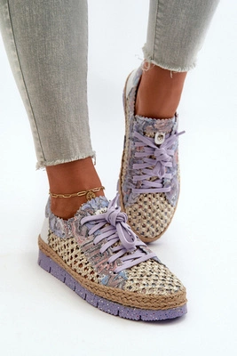 Sandały Damskie Na Koturnie I Platformie Z Ozdobami S.Barski HY056 Fioletowe