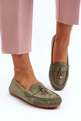 Damskie Zamszowe Klasyczne Mokasyny Zielone Ontala