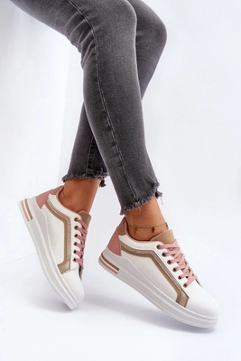 Damskie Sneakersy Na Koturnie Beżowe Leoppa