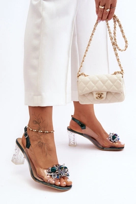 Sandały Zdobione Na Obcasie Ciemnozielone S.Barski MR1037-16