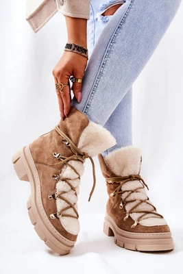 Ocieplane Zamszowe Botki Trapery Camel Annabeth