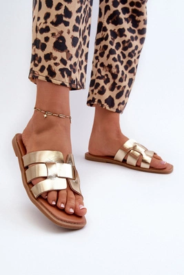 +1Płaskie Klapki Damskie Z Eko Skóry Złote Risamay