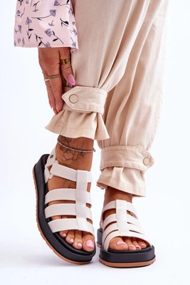 Wiązane Damskie Sandały Na Koturnie Beżowe Josephine