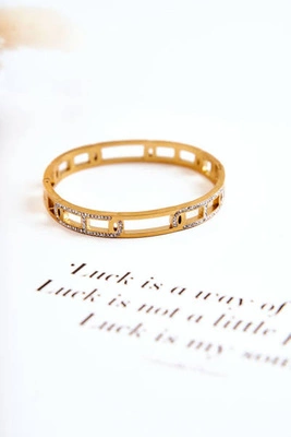 Damska Bransoletka Stalowa Z Ozdobnymi Cyrkoniami Złota