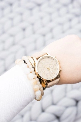 Stylowy Złoty Damski Zegarek z Bransoletą