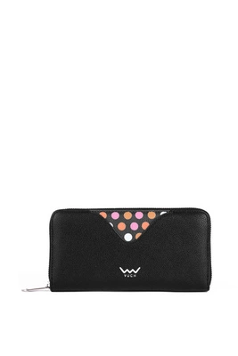 Damski Duży Portfel Na Suwak Kropki Czarny Lunelly