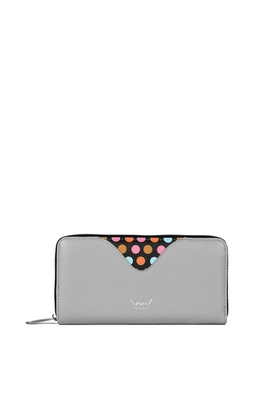 Duży Portfel Na Suwak W Kropki Szary Reine