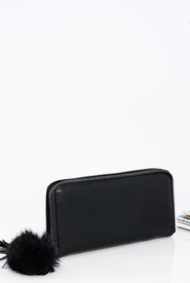 Damski Duży Portfel Ozdobny Zamek Brelok Pompon Czarny