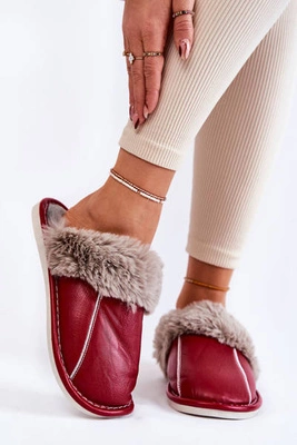 Damskie Skórzane Papcie Z Futerkiem Czerwone Rossa