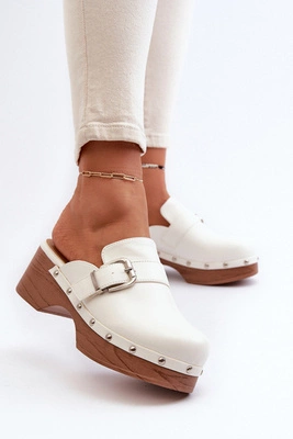 Damskie Klapki Chodaki Z Klamrą Białe Seprilla