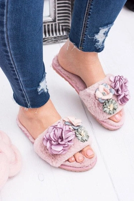 Klapki Damskie Z Futerkiem Pudrowy Róż Fur