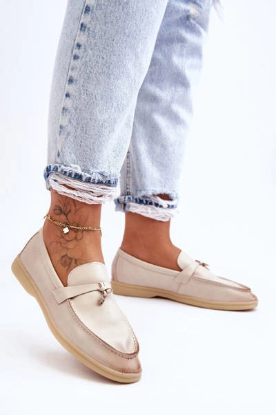 Mokasyny Damskie Z Eko Skóry Beżowe Lomnela